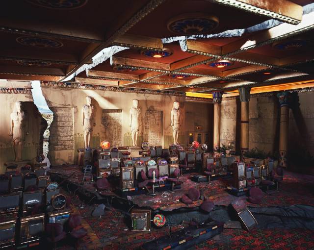 टूटी - फूटी कैसिनो, जो टूटी हुई दीवार के बहार से रेगिस्तान को दर्शाता हुआ।