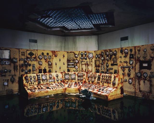 लंबे समय से काम न आने के कारण जंग लगी हुई नियंत्रण कक्ष।