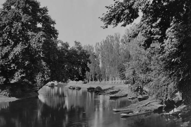 Image: नदी का दृश्य, पेड़ की सीमाएं श्रीनगर में भारत की नहर के प्रवेश द्वार पर।